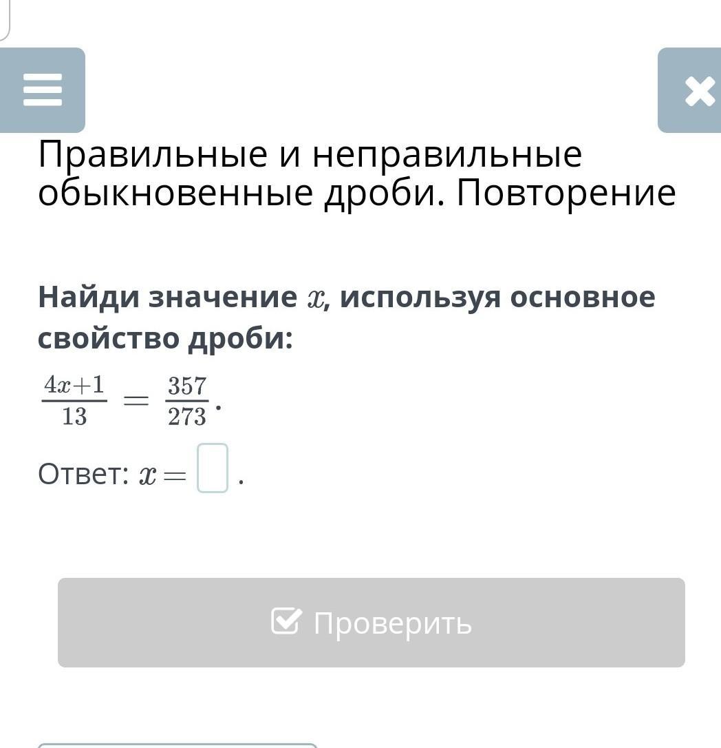 сокращяешь последнюю дробь получается 17 дробь 13 ( дробь это черта) после 17-1=16 получается 4x= 16 x=16:4 x=4