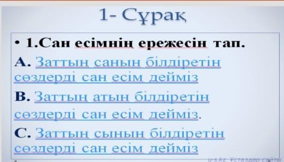 А. заттың санвн білдіретін сөздерді сан есім дейміз