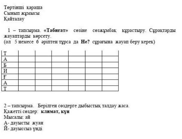 1 - тапсырма «Табиғат» сөзіне құрастыру Сұрақтарды