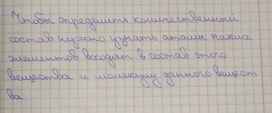 Чтобы определить количественный состав нужно узнать атомы каких элементов входят в состав этого вещества и молекулу данного вещества.