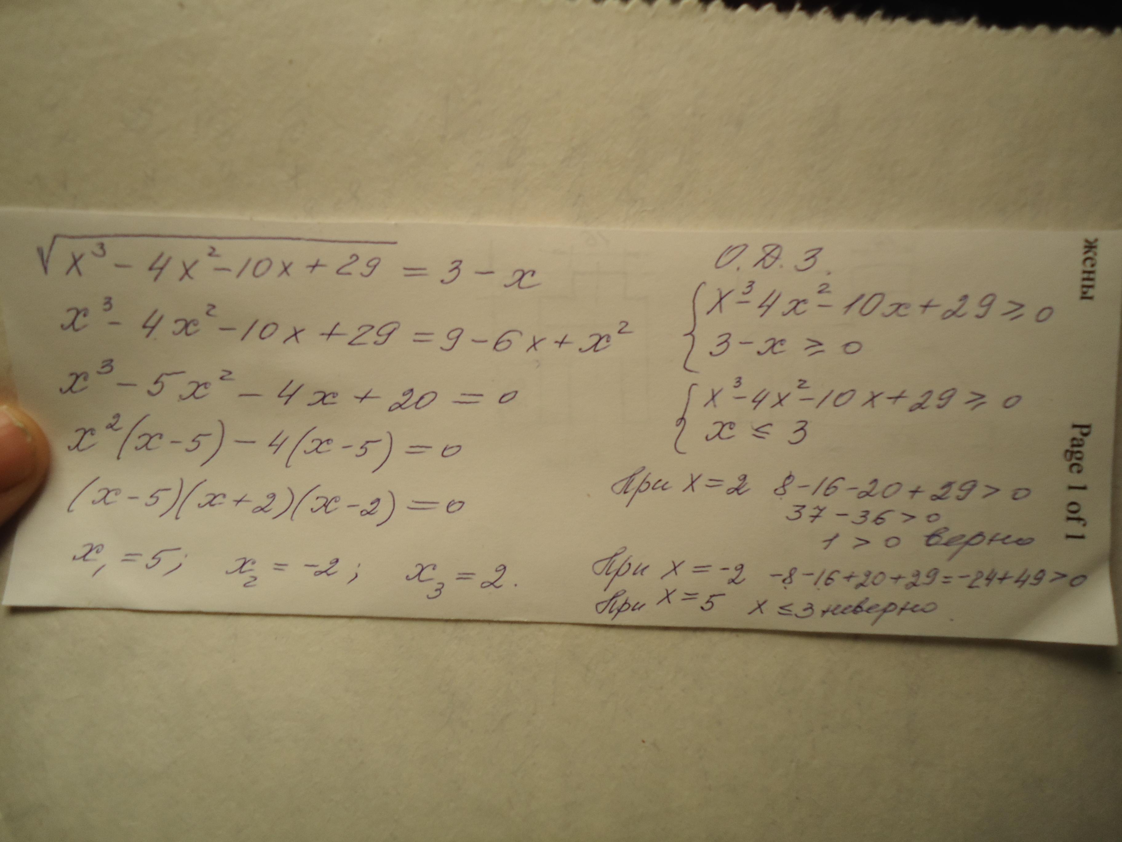О.Д.З. х³-4х²-10х+29≥0 и 3-х≥0;
