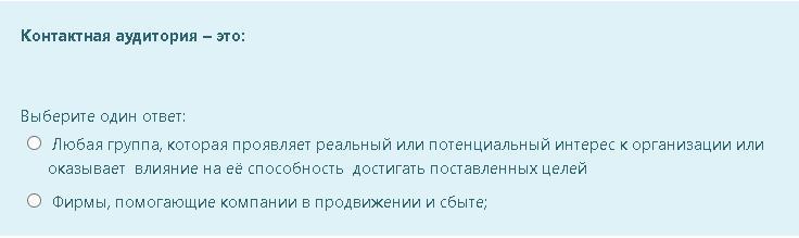 Любая группа которя, провляет реальный или потенциальный интерес к организации или оказывает влияние на ее способность достигать поставленных целей.