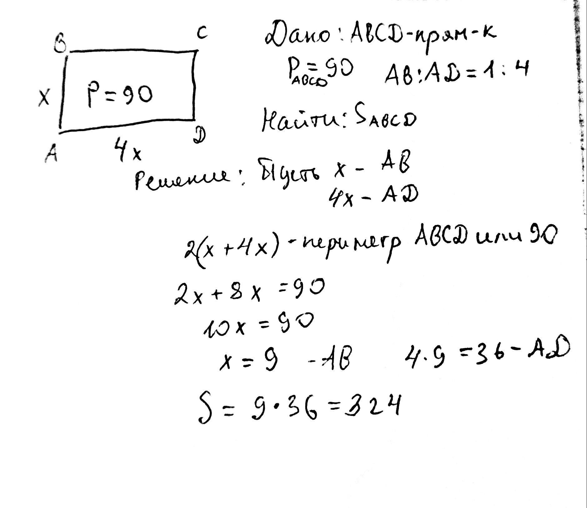 Помогите пж срочно даю что есть найдите площадь прямоугольника если его периметр 90 а стороны относятся как 1:4