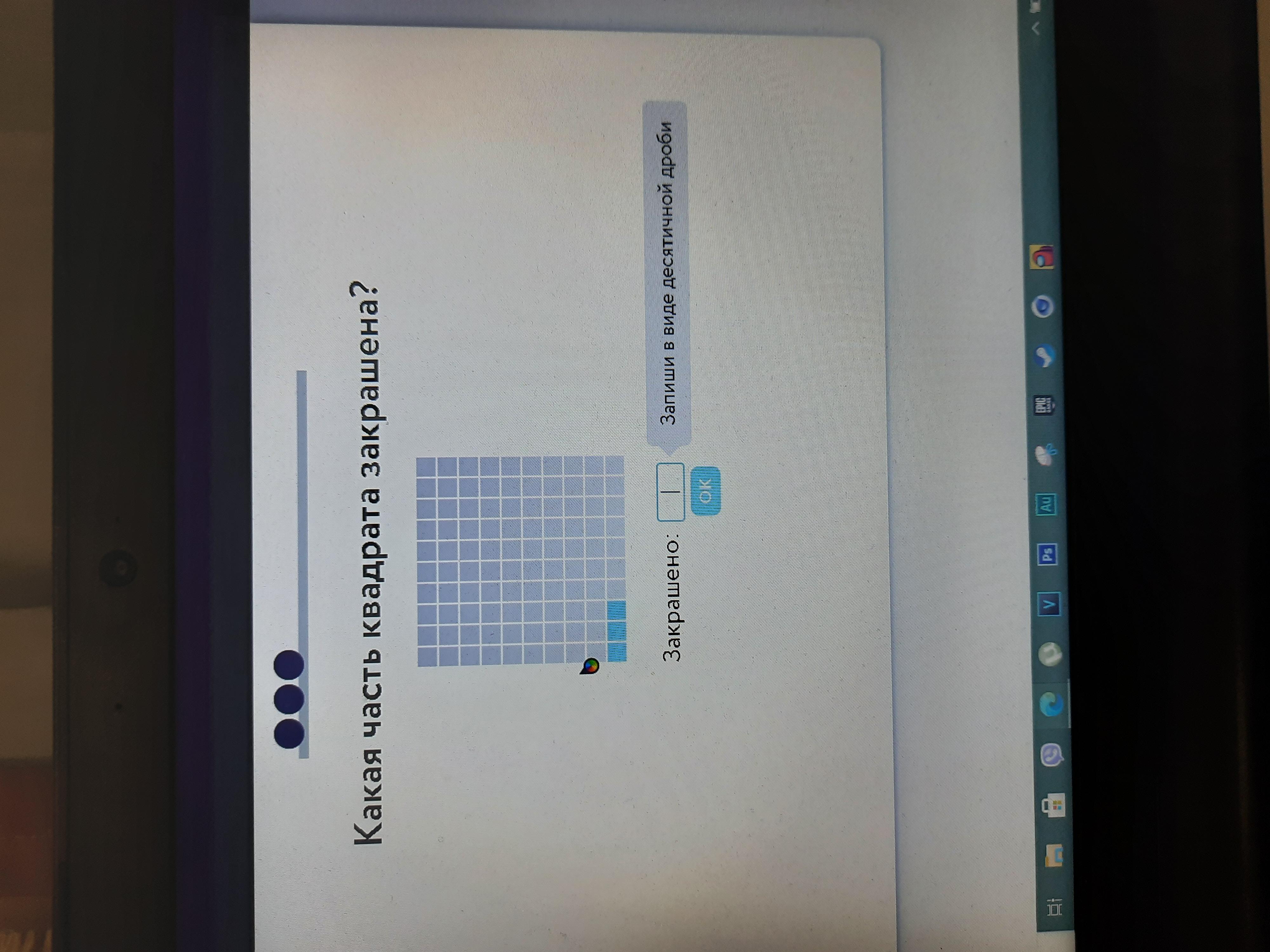 Объяснение: в квадрате 100 клеток, три из них закрашены. В десятичных дробях это пишется 0, 03.