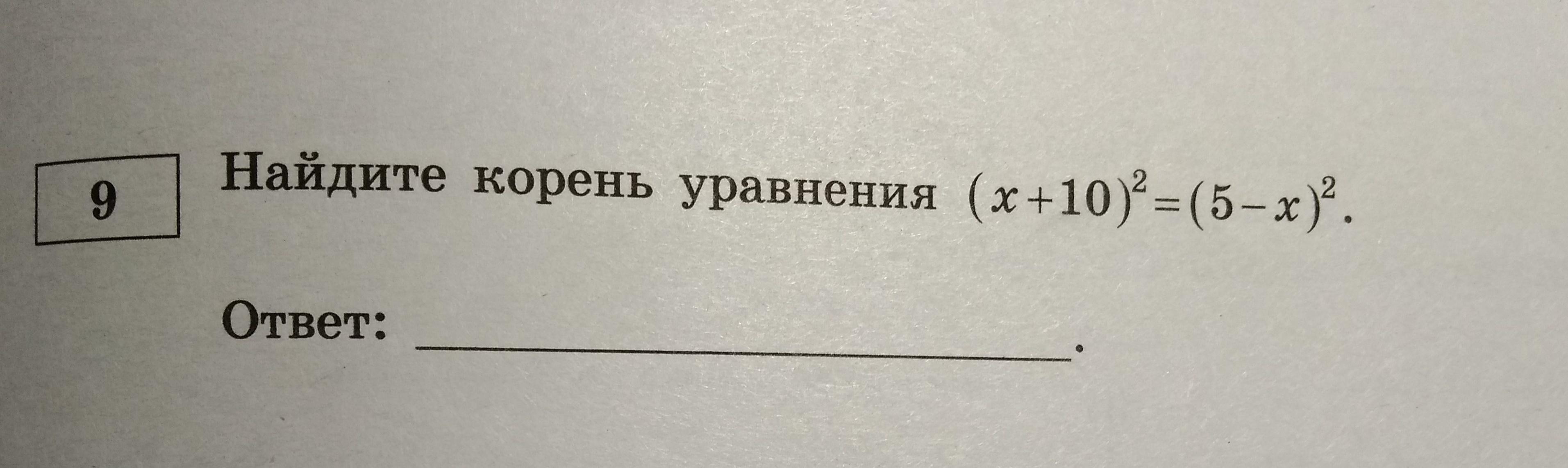 9. (х+10) во 2 степени = (5-х) во 2 степени