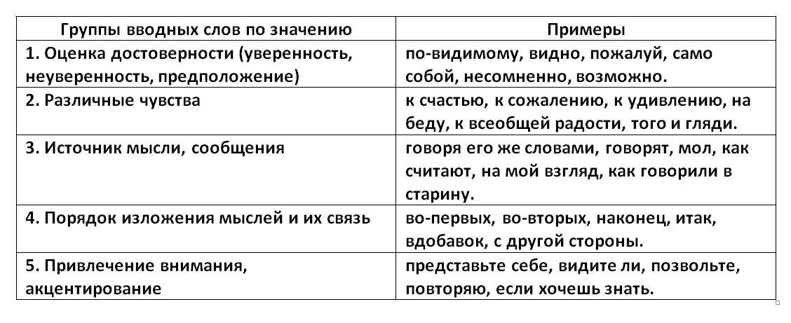 Прочитайте предложения, найдите вводные слова, сгруппируйте их по значению и заполните таблицу. Дополните таблицу своими примерами.
