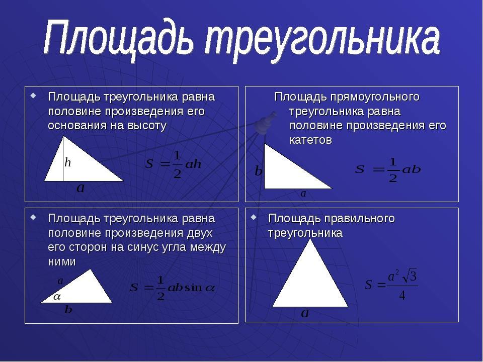 4) S = (a*b*sin<A)/2