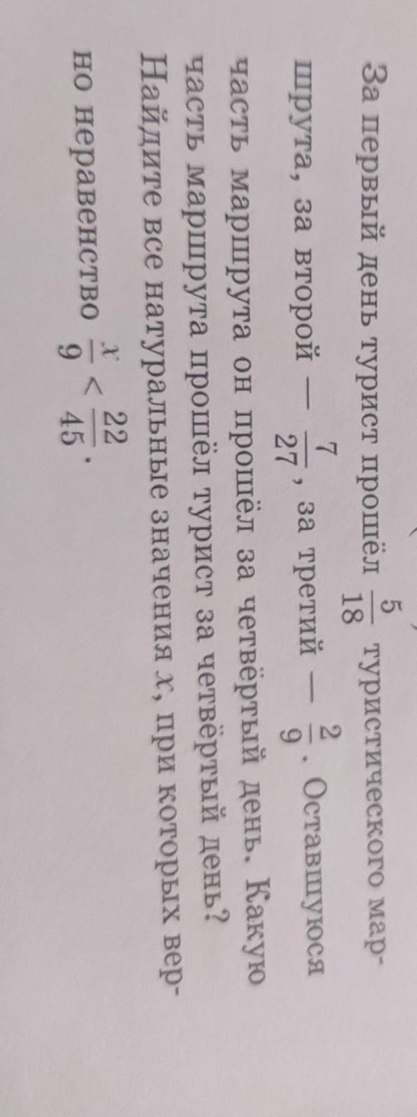 Следовательно, за 4й день он прошел 54/54-41/54=13/54 маршрута