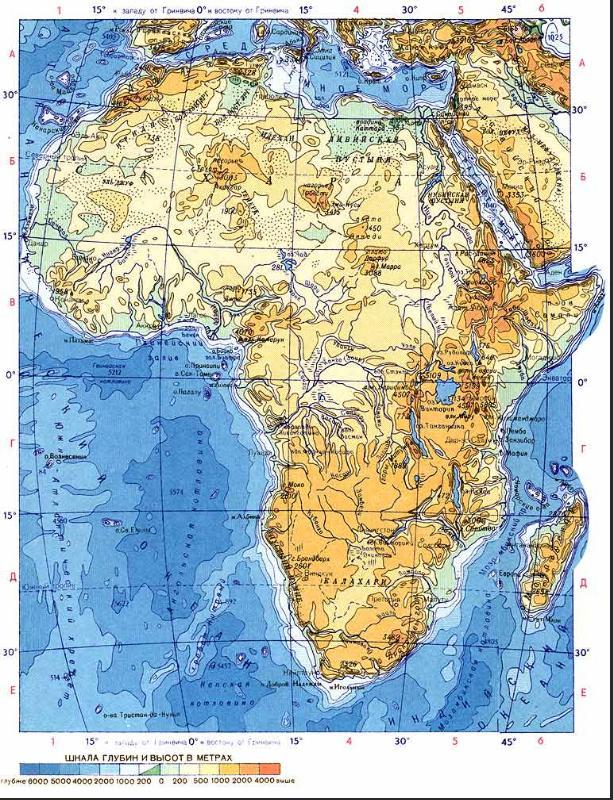 Как видно из карты, которая дана ниже в приложении, в рельефе Африки преобладают возвышенности и плоскогорья.