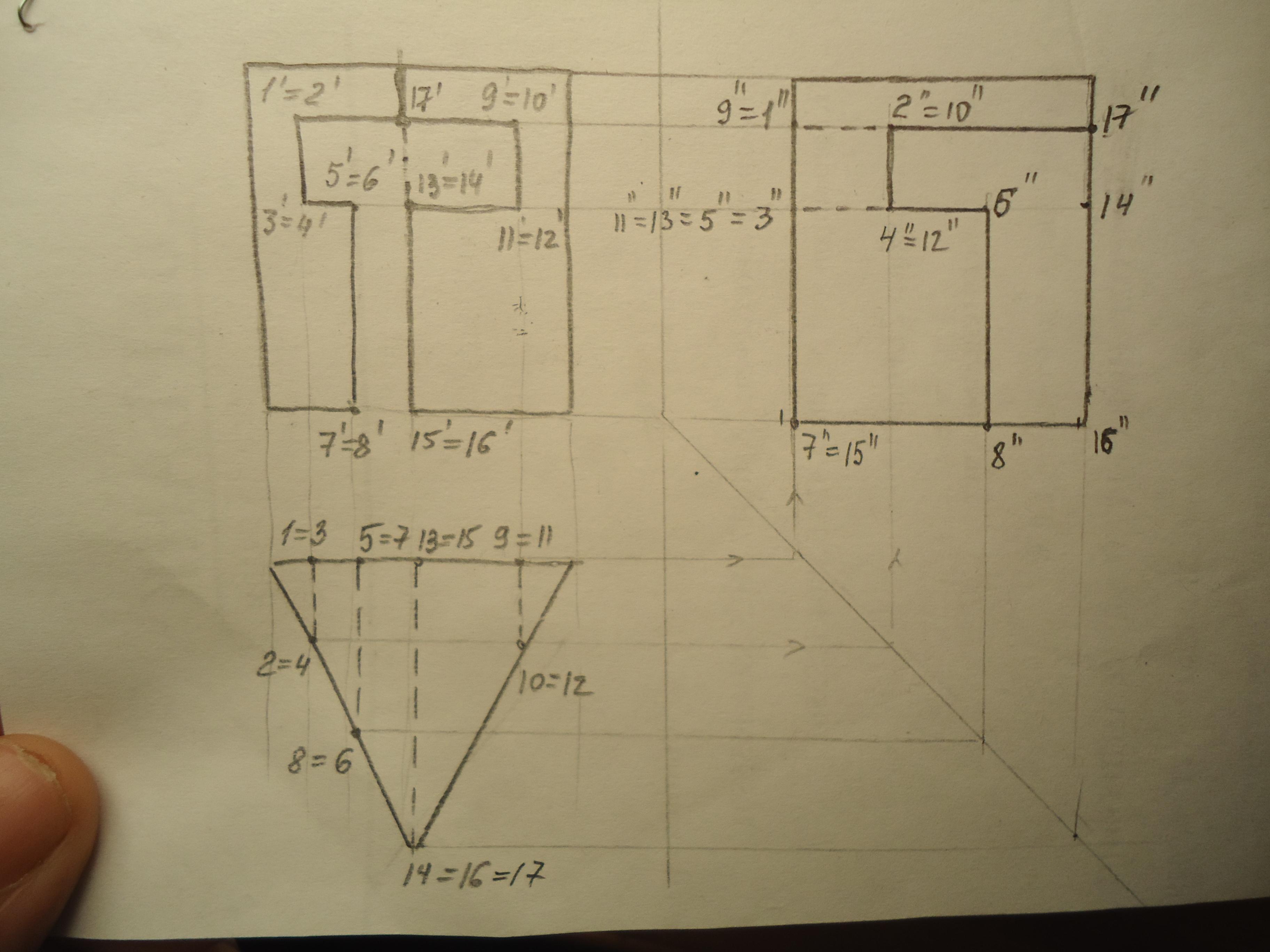 При построении диметрии не забудьте, что по оси "у" и параллельно ей отступать надо расстояния в два раза меньше натуральных.