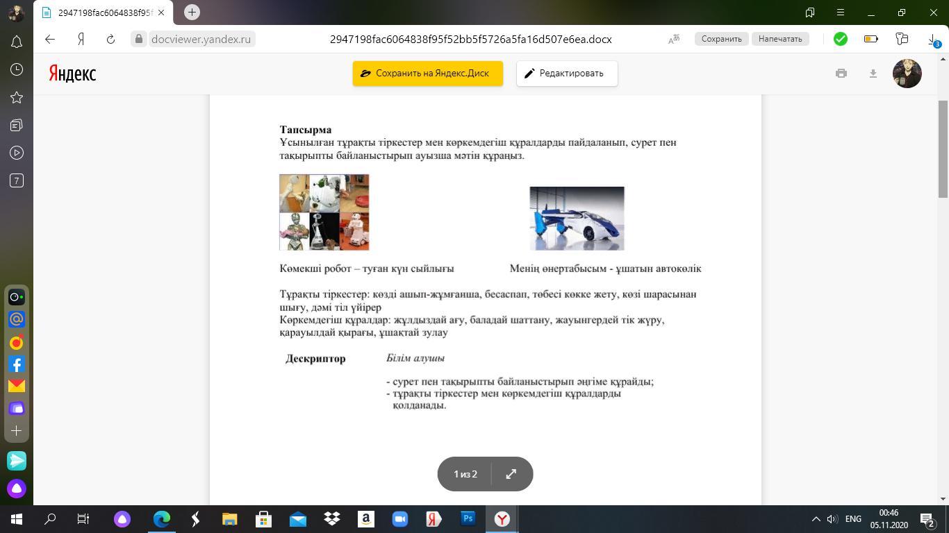 Біздің үйде көмекші робот бар.Ол өте ақылды .Ол үй жинауға көмектеседі.Ол сыйлықтар жасай алады.Керек болса тамақ жасайды.Тамақтын дәмі тіл үйырлер.Біздің үйде ақылды робот болғанына қуанам.