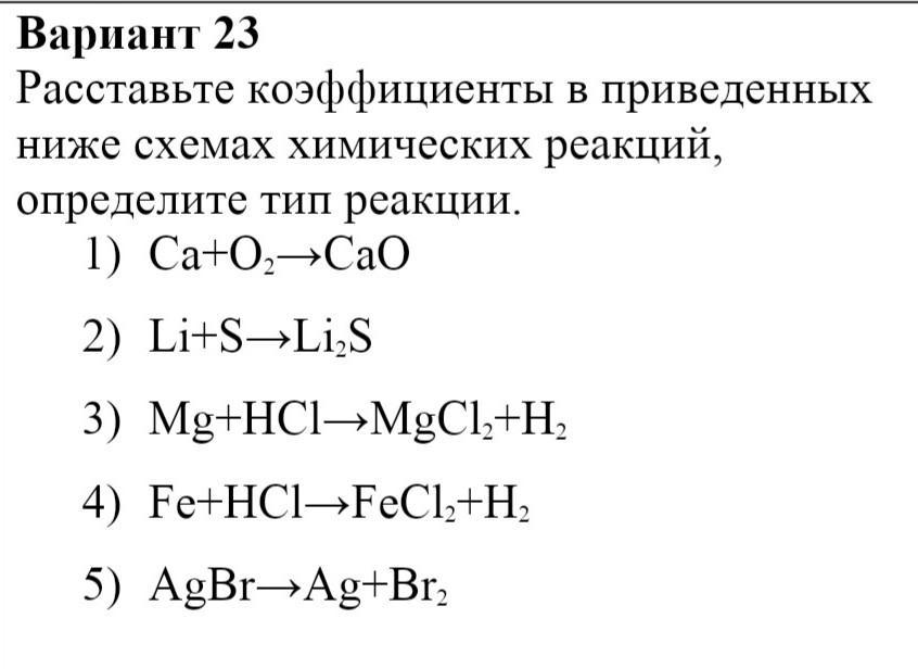 4)Fe+2HCl—FeCl2+H2 реакция замещения