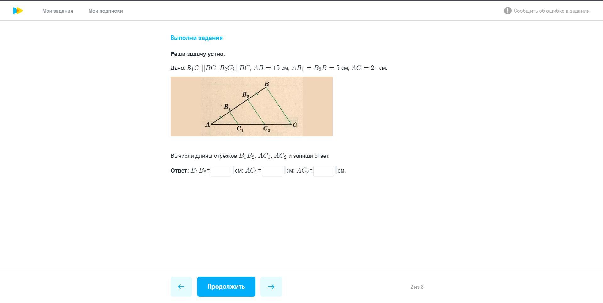 B1B2=1/3 *AB= 15/3= 5 см
