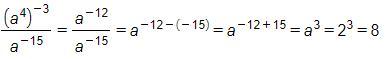 (а^4)^-3/a^-15=a^-12/a^-15=a^15/a^12=a^3