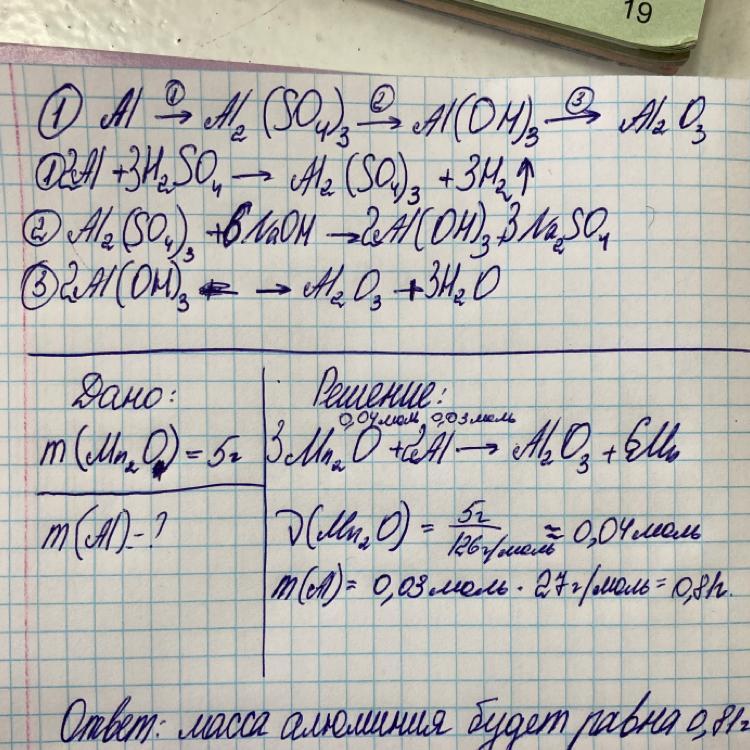 Al → Al 2 (SO 4 ) 3 → Al(OH) 3 → Al 2 O 3