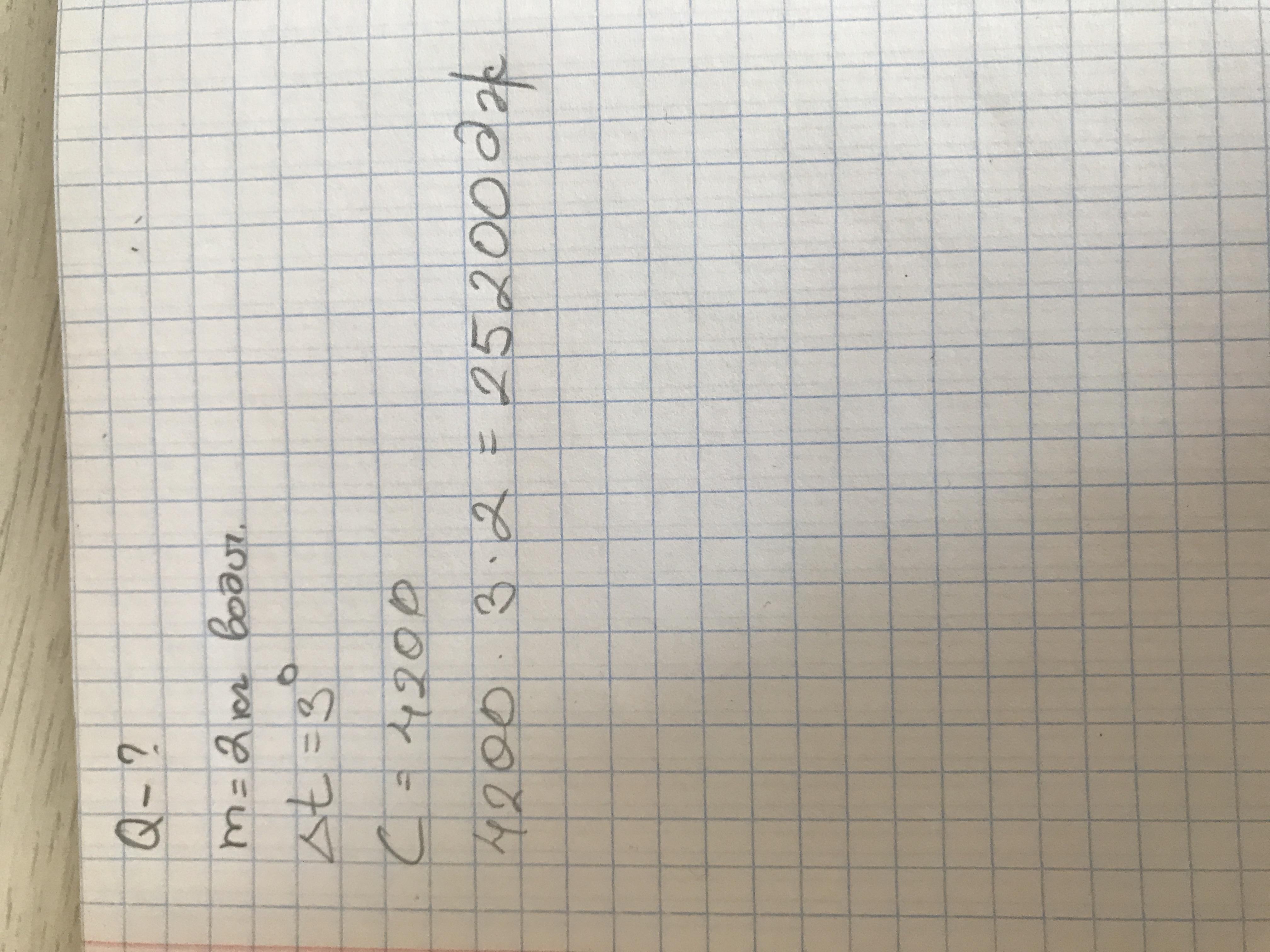 Какое количество теплоты получило 2 кг воды, если она нагрелась на 3 градуса?(теплоемкость воды 4200Дж/кгС)