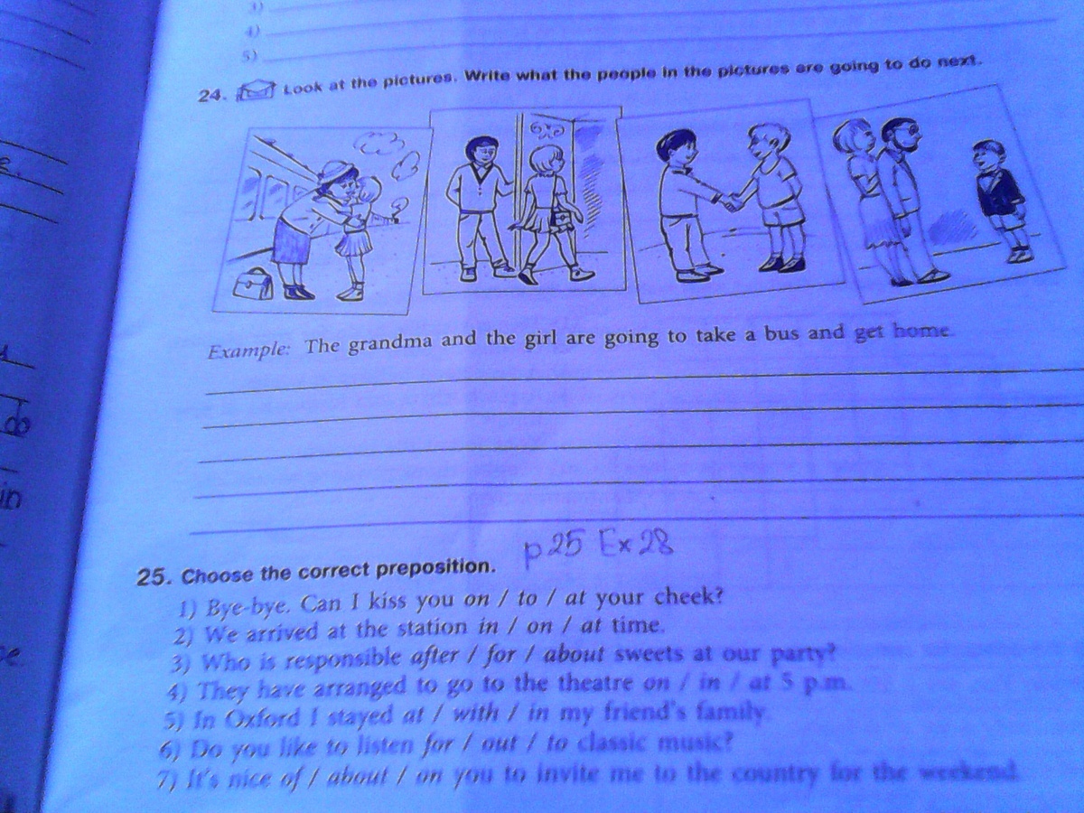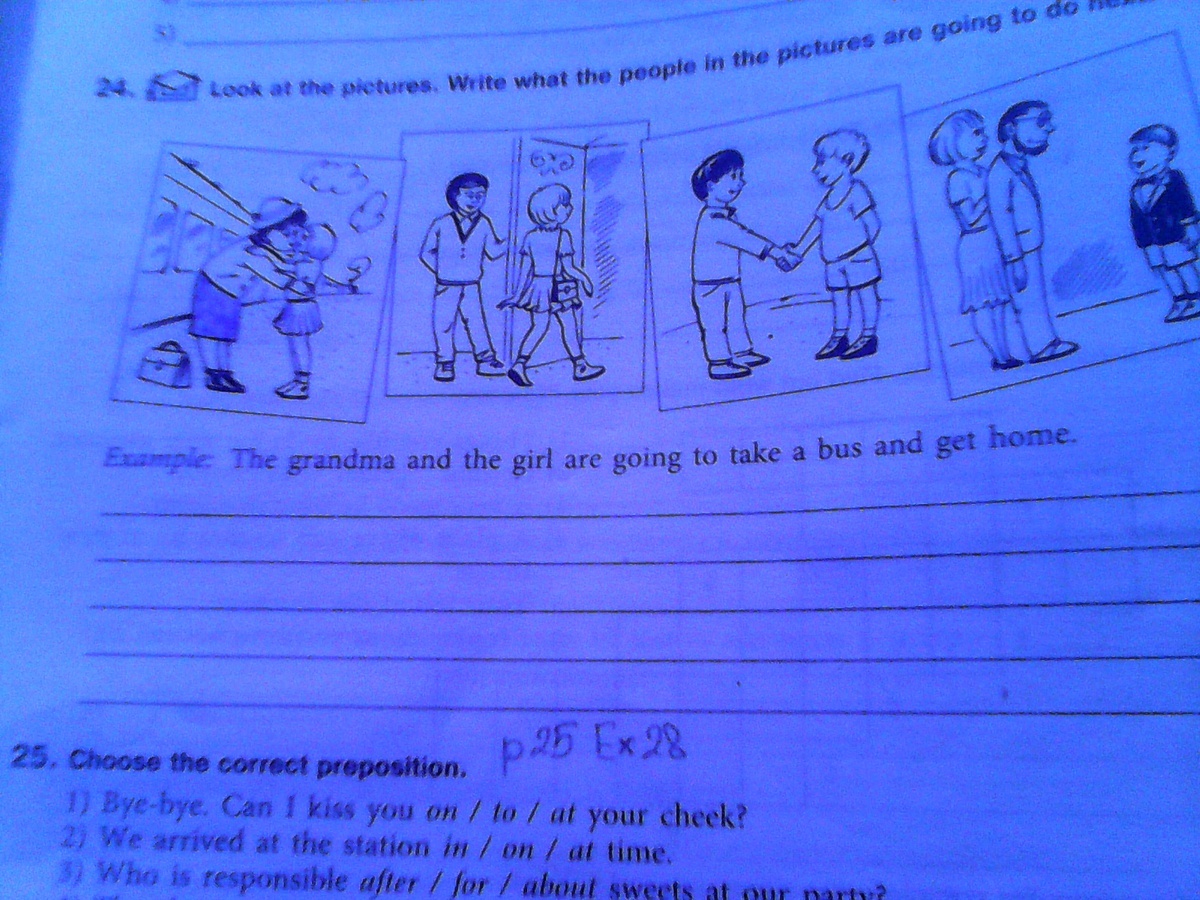 В 24 составить предложения по картинкам, на английском языке, с переводом на русский.