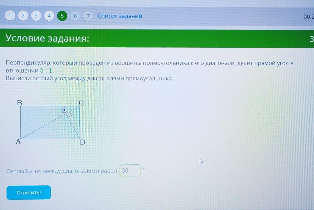 1) "в соотношениии 5:1" , значит, уг АДЕ =90:6*5=75°, тогда из прямоуг треугольника АВД ⇒уг САД=180-90-75=15°