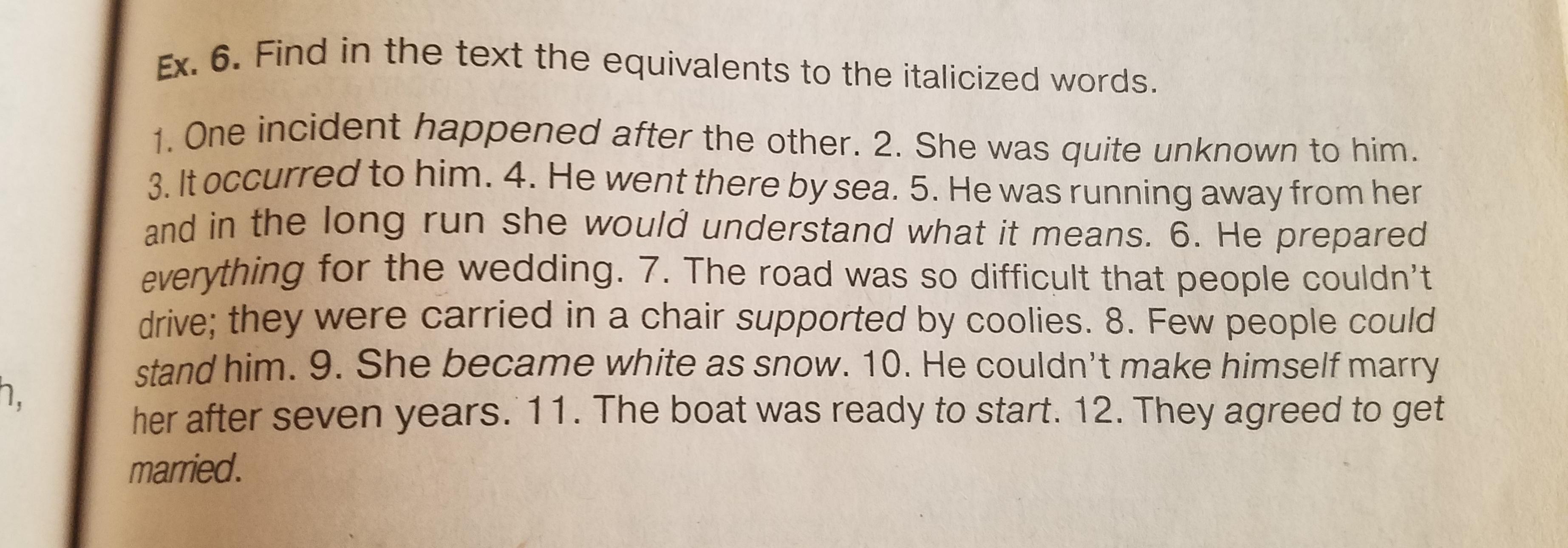 Найдите в тексте эквиваленты выделенным курсивом словам.