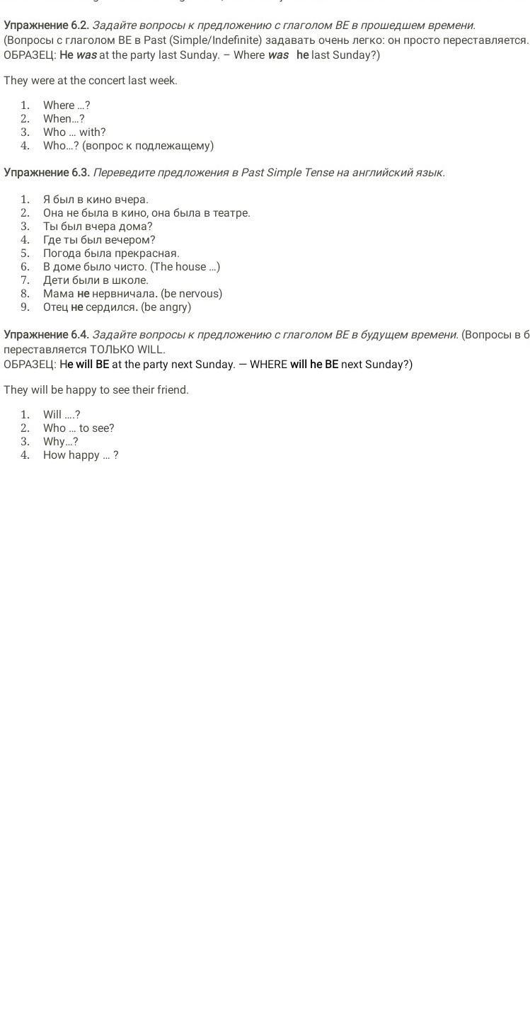 Exercise 6.3. Translate sentences in Past Simple Tense into English.