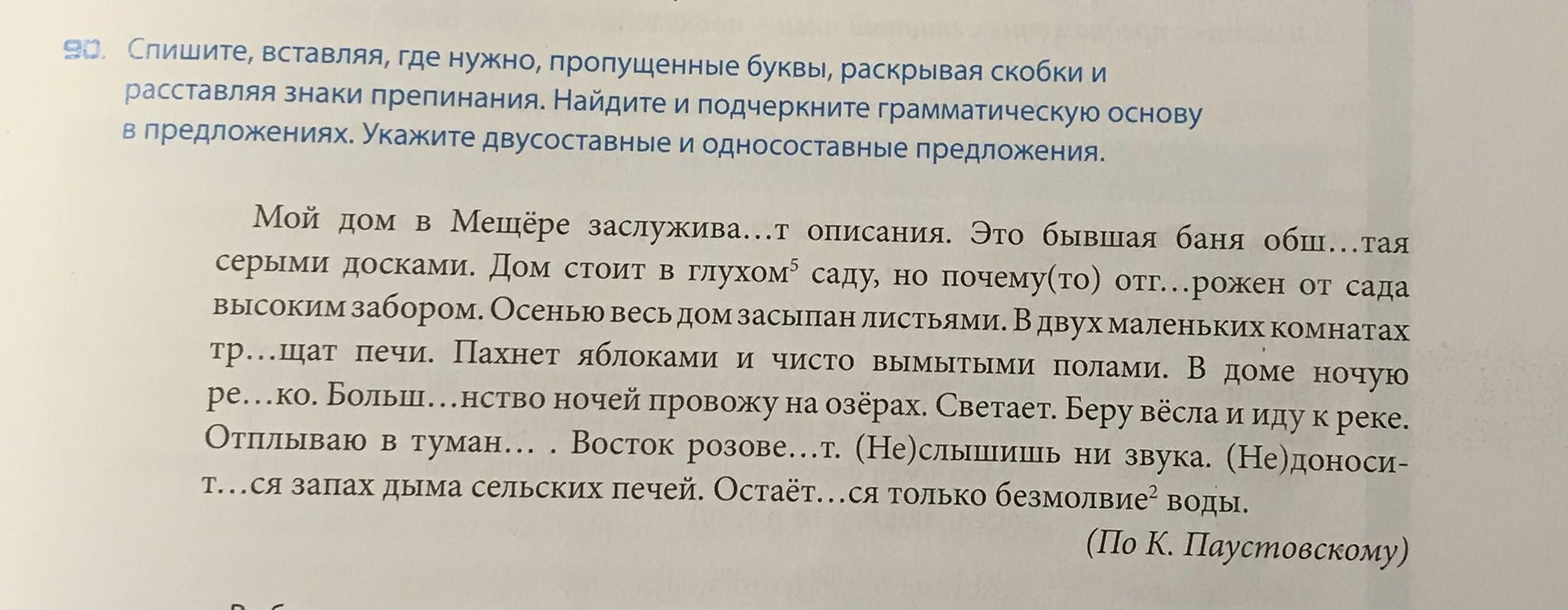 Мой дом в Мещёре заслуживает описания. Это бывшая баня обшитая серыми досками. Дом стоит в глухом саду, но почему-то отгорожен от сада высокимзабором. Осенью весь дом засыпан листьями. В двух маленьких комнатах трещат печи. Пахнет яблоками и чисто вымытыми полами. В доме ночую резко. Большинство ночей провожу на озёрах. Светает. Беру вёсла и иду к реке. Отплываю в тумане . Восток розовеет. Не слышишь ни звука. Не доносится запах дыма сельских печей. Остаётся только безмолвие воды.