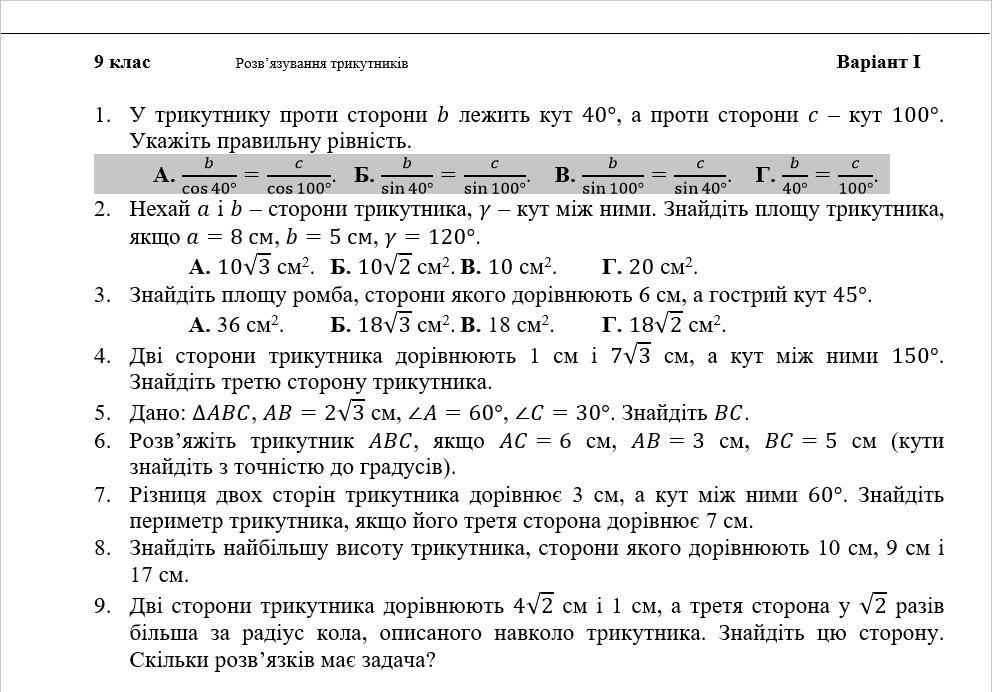 Ответ: Б a/Sin40°=c/Sin100°
