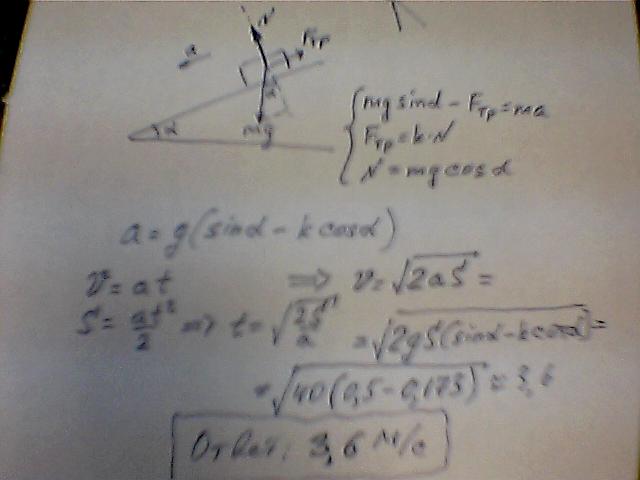 a=2*cos(pi/6)/1+9,81*sin(pi/6)-(9,81*cos(pi/6)-2*sin(pi/6)/1)*mu м/с^2= 0,544814 м/с^2 ~ 0,55 м/с^2