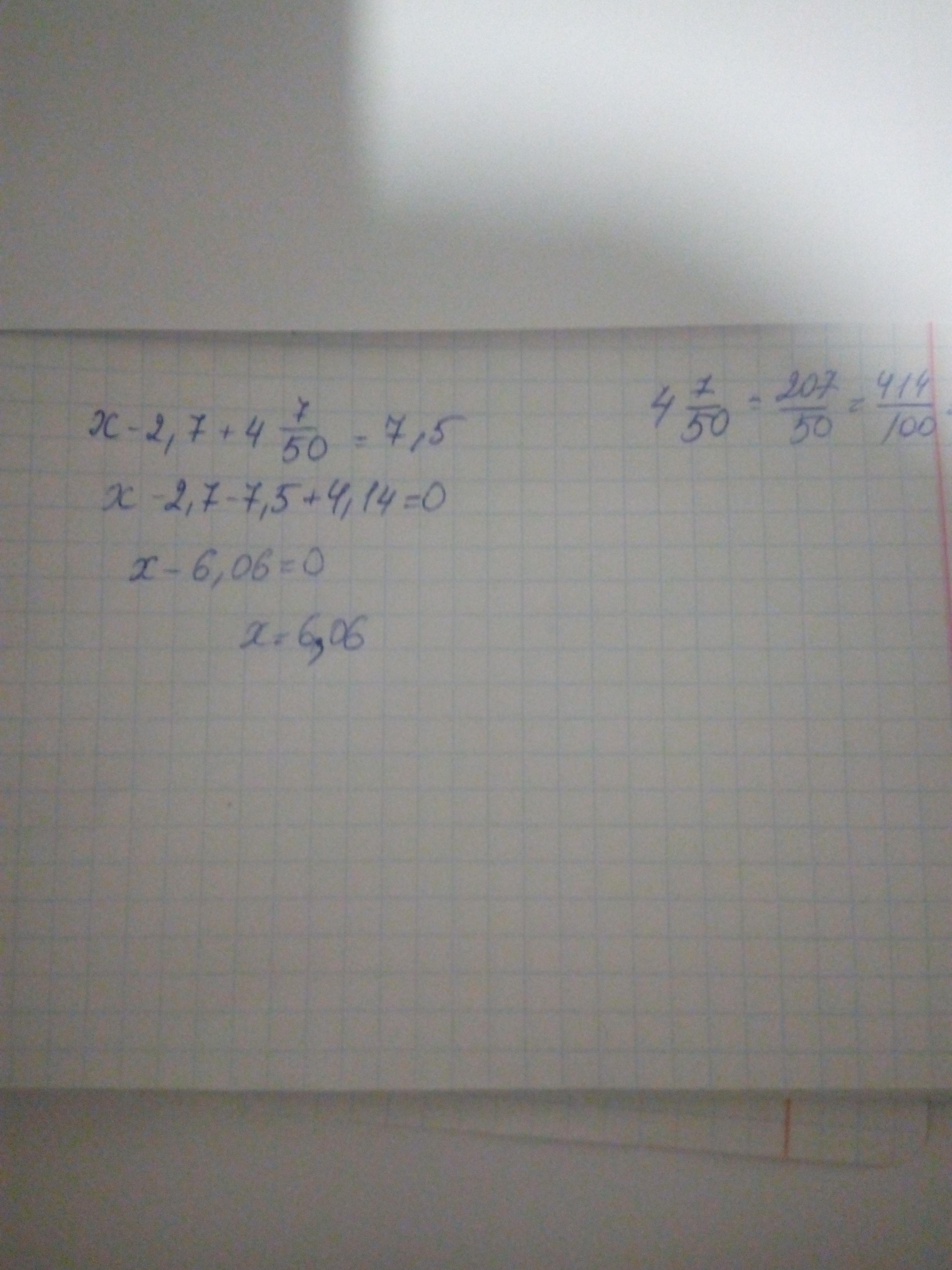 рівняння (х – 2,7) + 4 7/50=7 1/2