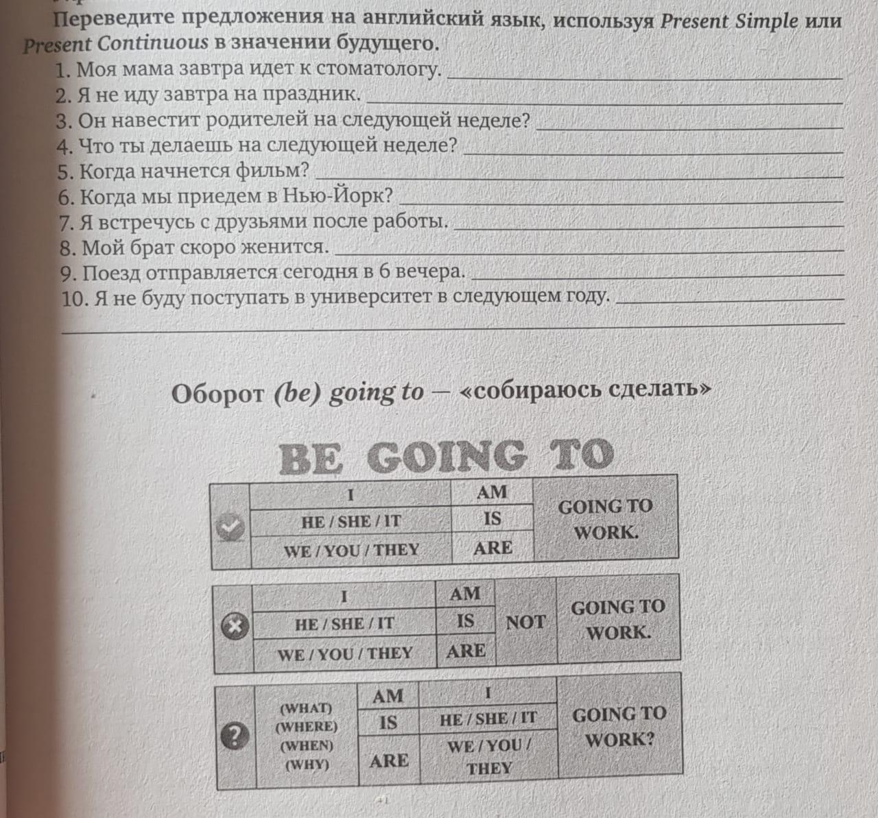Переведите предложения на английский язык, используя Present Simple или Present Continuous в значении будущего.