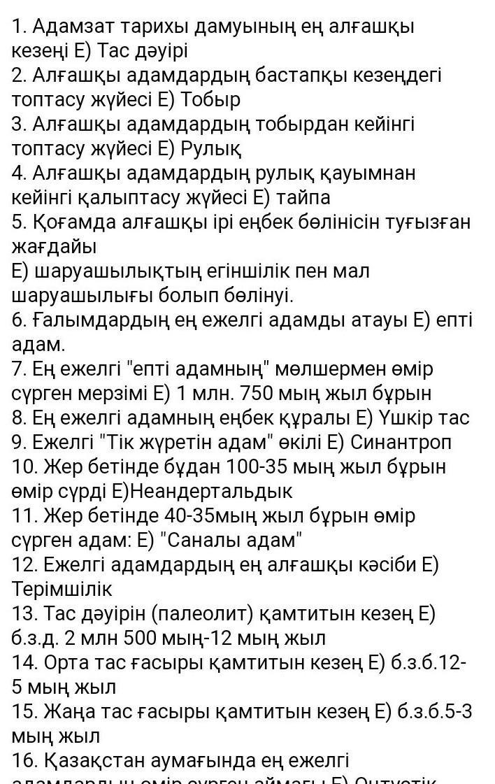 1.Адамзат тарихы дамуының ең алғашқы кезеңі: