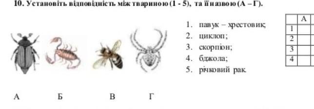 10. Установіть вішовіність між твариною (1.5), та й назвою (А -Г).