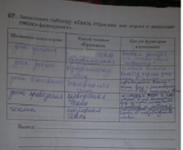Вывод : каждая зона корня выполняет лишь определённые функции. Когда корень растёт, зоны перемещаются в почве, что является важным приспособлением к поглощению воды и питательных веществ из все новых участков почвы.