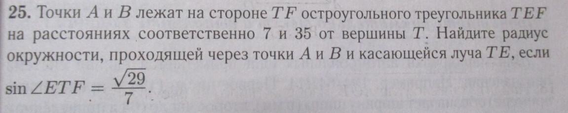 Найдите радиус окружности, проходящей через точки и касающейся луча, если SIN. Подскажите, пожалуйста, как это решить через sin, не cos! Задача в приложении. Спасибо ЛЮДИ ДОБРЫЕ!