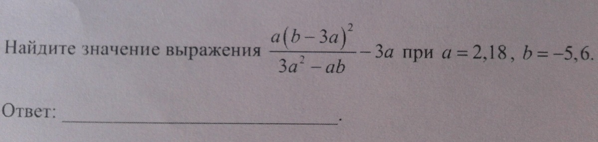 =a(3a-b)^2/a(3a-b) - 3a=сокращаем на a и (3а-b)=3a-b-3a=-b=-(-5,6)=5,6
