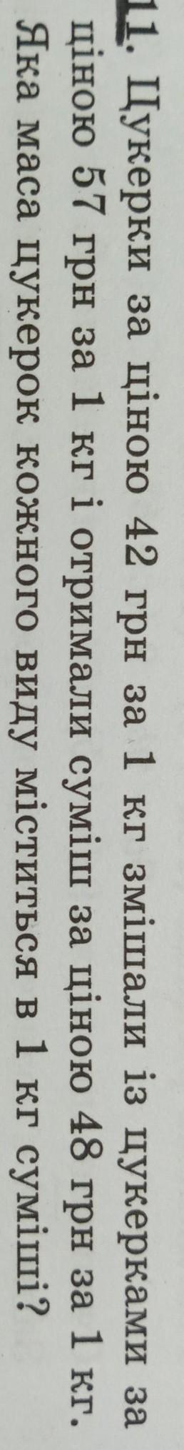 Взяли 9 кг по 42 грн и 6 кг по 57 грн, получилось 9 кг смеси, а на сам вопрос в ответе не уверенна, выходит отношение 9:6 или 3:2, значит в 1 кг 600 гр конфет по 42 грн и 400 гр конфет по 57 грн