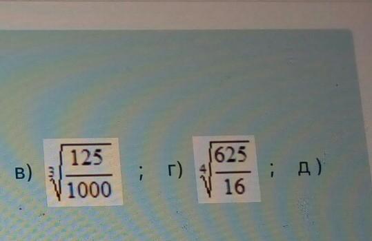 г) ⁴√625/16 = ⁴√5⁴/2⁴ = ⁵/₂ = 2,5