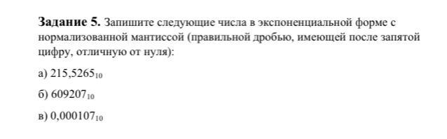 Задание 5. Запишите следующие числа в экспоненциальной форме с