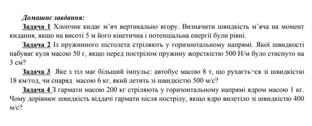 Закон збереження енергії: Ек0 + Еп0 = Ек1+Еп1