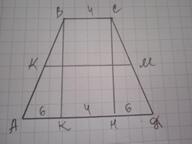 ΔАВК=ΔСDН по катету и гипотенузе, значит АК=DН=(16-4)/2=6.