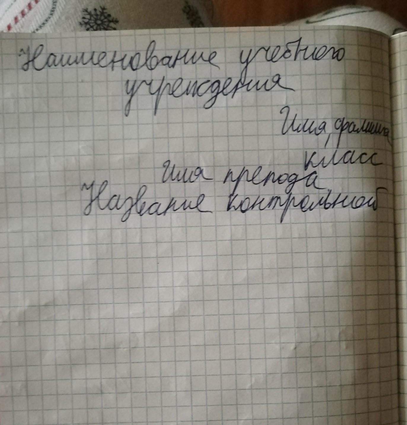Я сейчас на семейном обучении (не спрашивайте), у меня сейчас итоговая аттестация по английскому, я делаю на двойных листочках. Как оформлять первую страничку? Типо так: