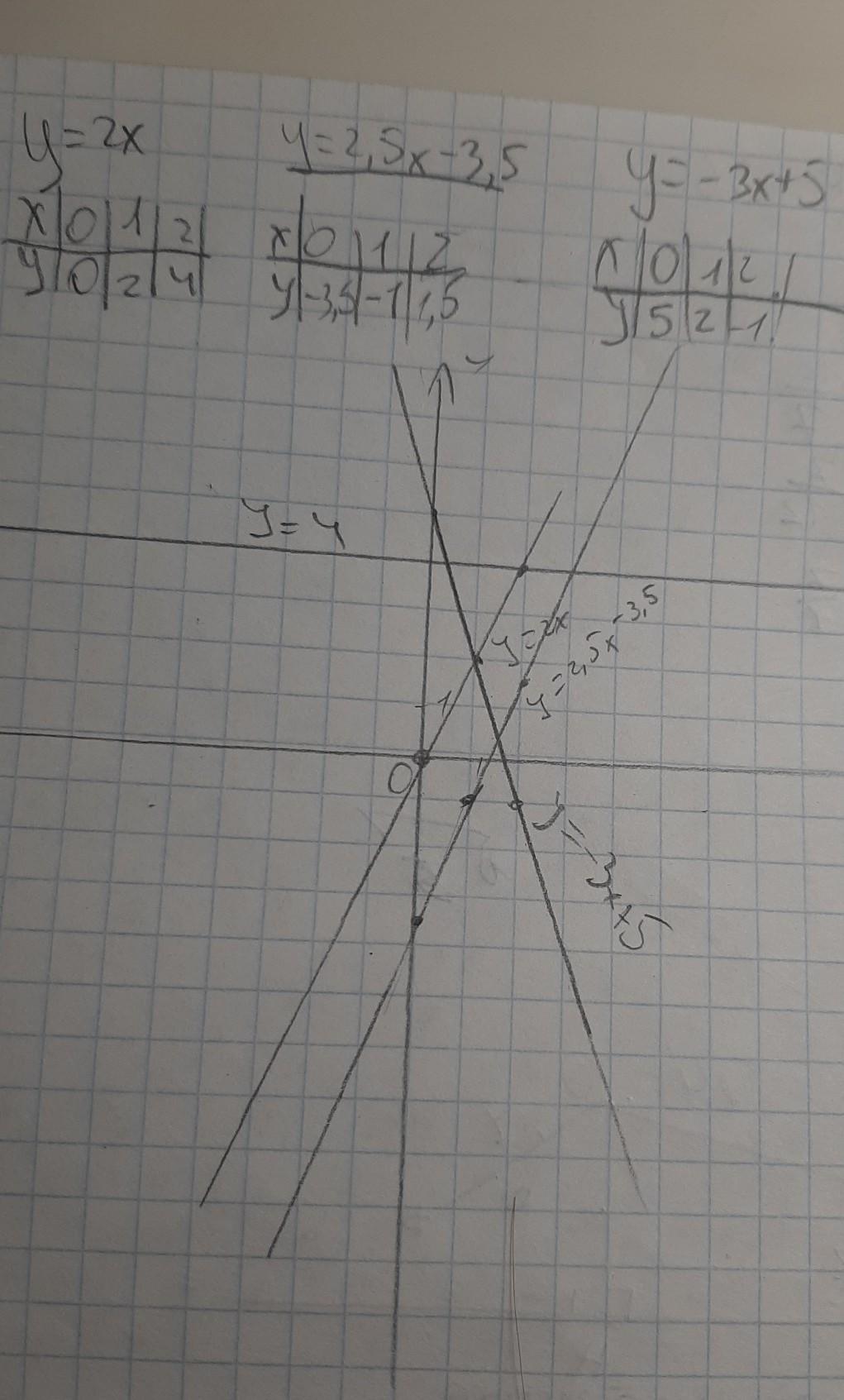 а) у = 2х; б) у = 4; в) у = 2,5х – 3,5 г) у = -3х + 5