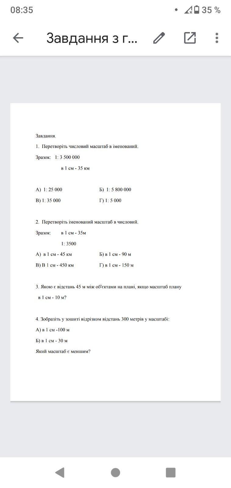 б) 1 см 35 км