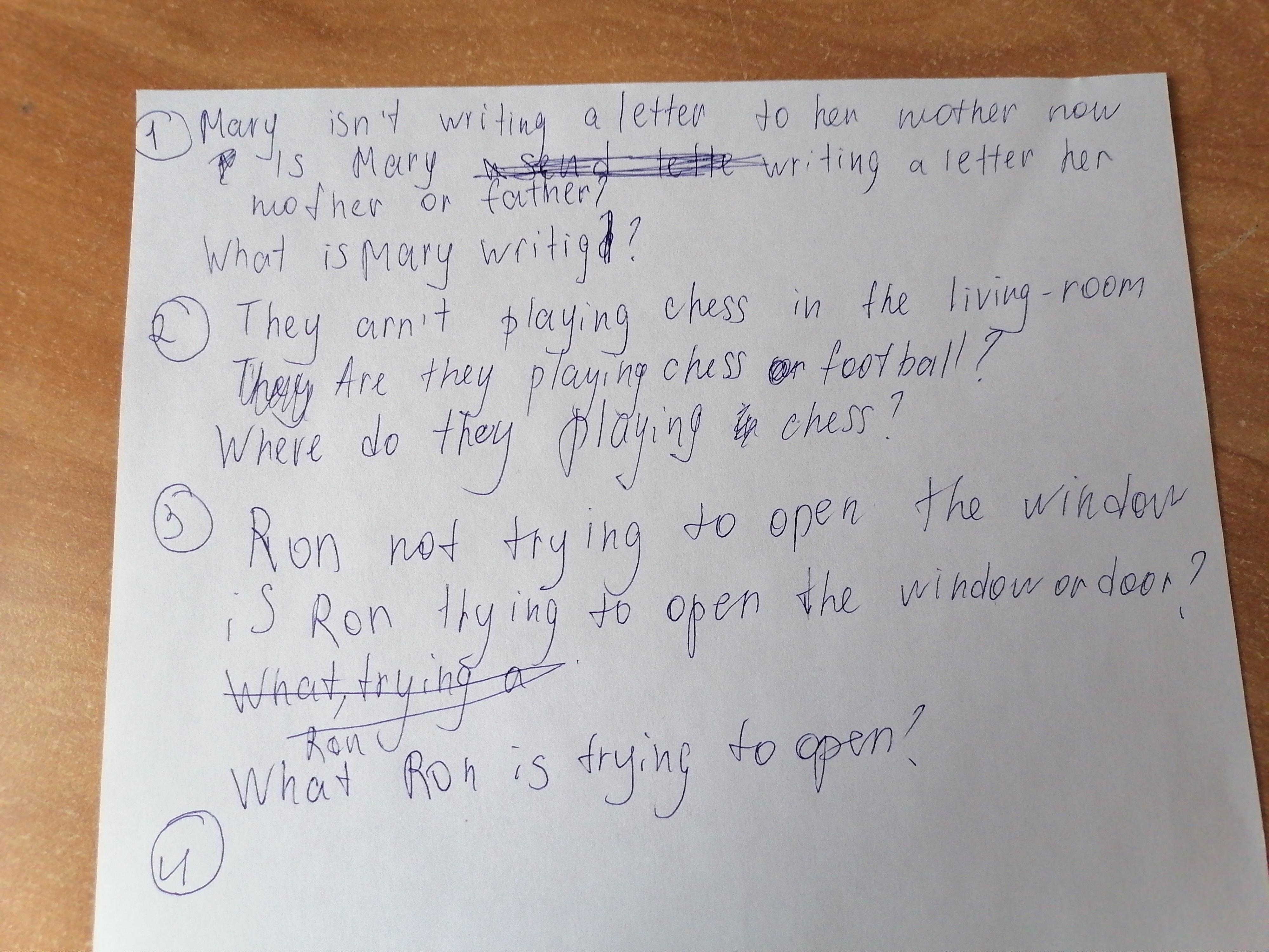 1. Mary is writing a letter to her mother now. 2. They are playing chess in the living-room. 3. Ron is trying to open the window. 4. We are translating the text now. 5. My sister is cooking breakfast. 6. My father is watching a football match the whole evening. 7. Ann is playing the violin and we are listening to the beautiful music. 8. The younger boys are singing in the boys’ choir.