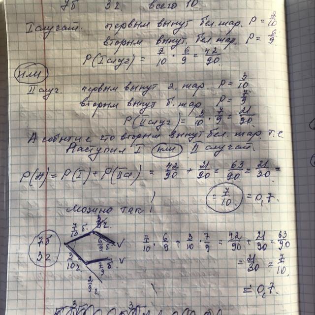 В коробке 7 белых и 3 черных шара. Вынув из коробки белый (событие B) или черный (событие C) шар, найдите вероятность того, что второй шар будет белым.
