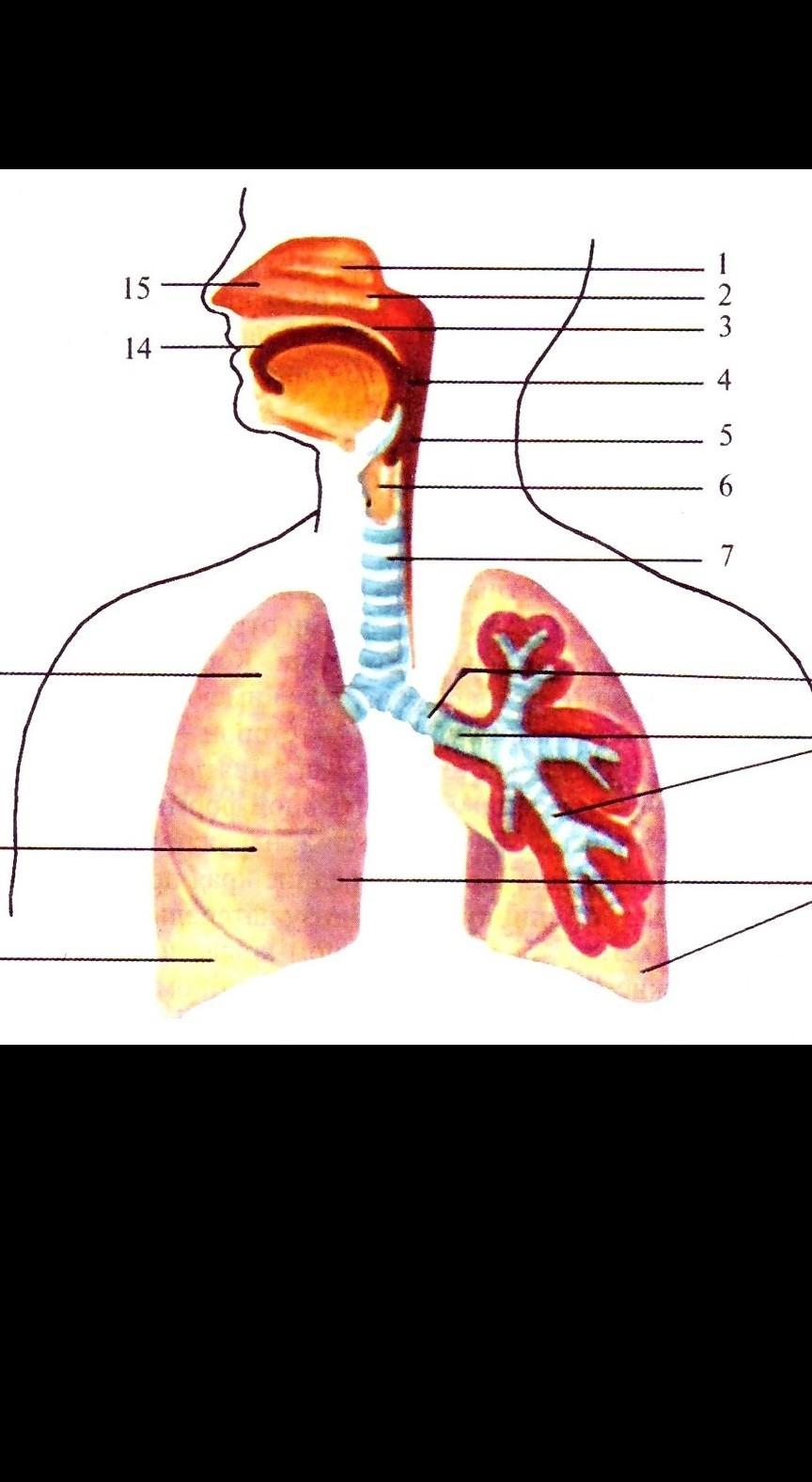 Рассмотрим строение отделов дыхательной системы, ссылаясь при этом на приведённую в вопросе картинку.