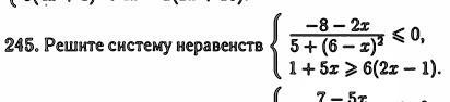 \left \{ {{\frac{-8-2x}{5+(6-x)^{2}}\leq0} \atop {1+5x\geq6(2x-1) }} \right.\\\\\left \{ {{\frac{-8-2x}{5+36-12x+x^{2}}\leq0} \atop {1+5x\geq12x-6 }} \right.\\\\\left \{ {{\frac{-2(x+4)}{x^{2}-12x+41}\leq0} \atop {5x-12x\geq-6-1 }} \right.\\\\\left \{ {{\frac{x+4}{x^{2}-12x+41}\geq0 } \atop {-7x\geq-7 }} \right.\\\\\left \{ {{x^{2}-12x+41>0prix\in R \Rightarrow x+4\geq0  } \atop {x\leq1 }} \right. \\\\\left \{ {{x\geq-4 } \atop {x\leq1 }} \right.\\\\Otvet:\boxed{x\in [-4;1]}