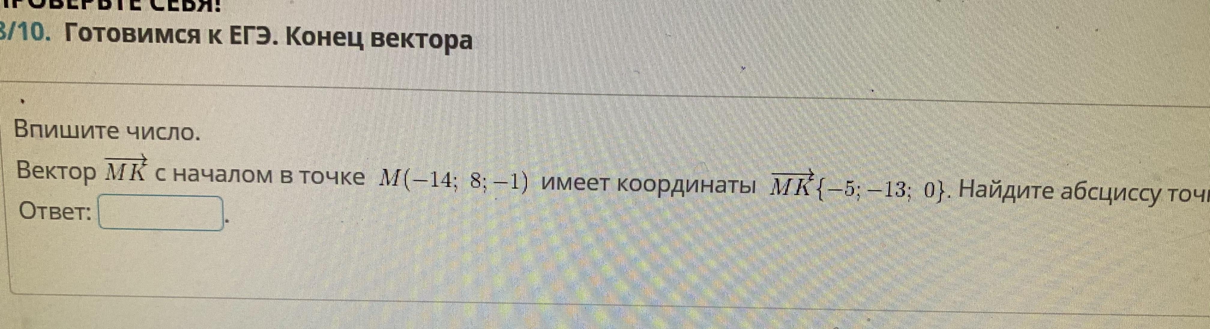 Найти абсциссу точки К: Ответ: -19