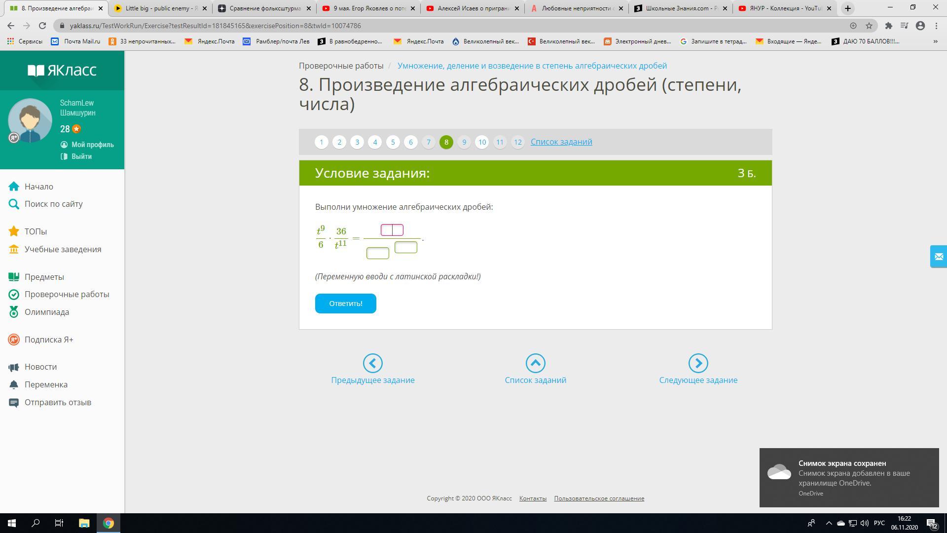 Там в задании 4 пропущенных окошечка t^4 никак не может получиться
