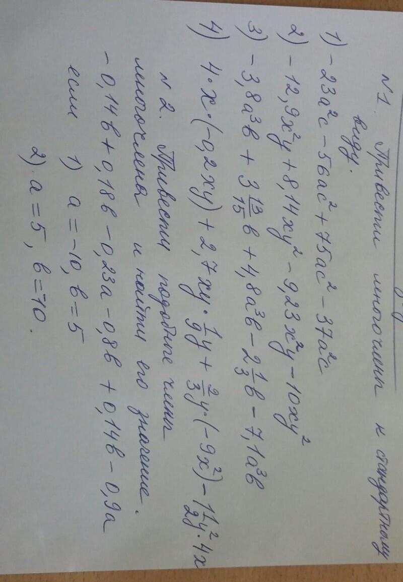 1. Привести многочлен к стандартному виду, значит, привести подобные члены и расположить одночлены в порядке убывания степеней, от большей к меньшей.