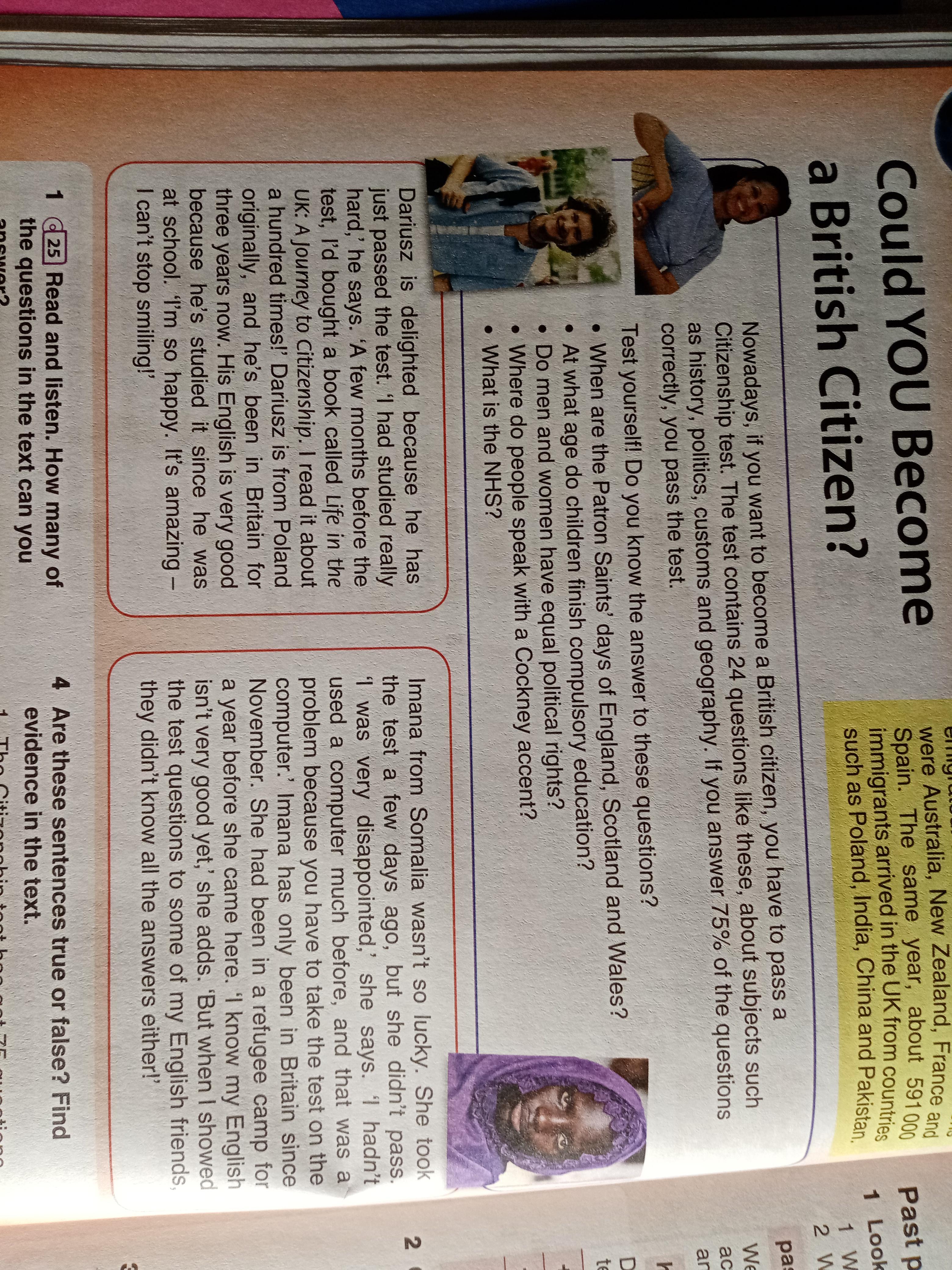 - True - A few months before the test, I'd bought a book called Life in the UK: A Journey to Citizenship. I read it about a hundred times.